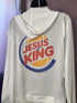 Whether you're a fan of bold fashion choices, a believer expressing your faith, or someone who enjoys sparking conversations through clothing, our Summer Zippered Hoodie Jacket with the "Jesus is King" inside the Burger King logo graphic design is the perfect addition to your wardrobe.