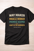 Declare the faithfulness of God with our Way Maker Christian T-Shirt, inspired by Isaiah 42:16. Featuring the powerful affirmations Way Maker, Miracle Worker, Promise Keeper, Light in the Darkness, this design reflects the unwavering character of God and His ability to lead, restore, and deliver—even when the path isn’t clear.