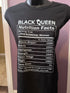 Graphic T-Shirt with Black Queen Nutrition Facts Design. Available in 100% Cotton or 50/50 cotton/poly blend. Great for gifts for Mother's Day, Birthdays, and more.